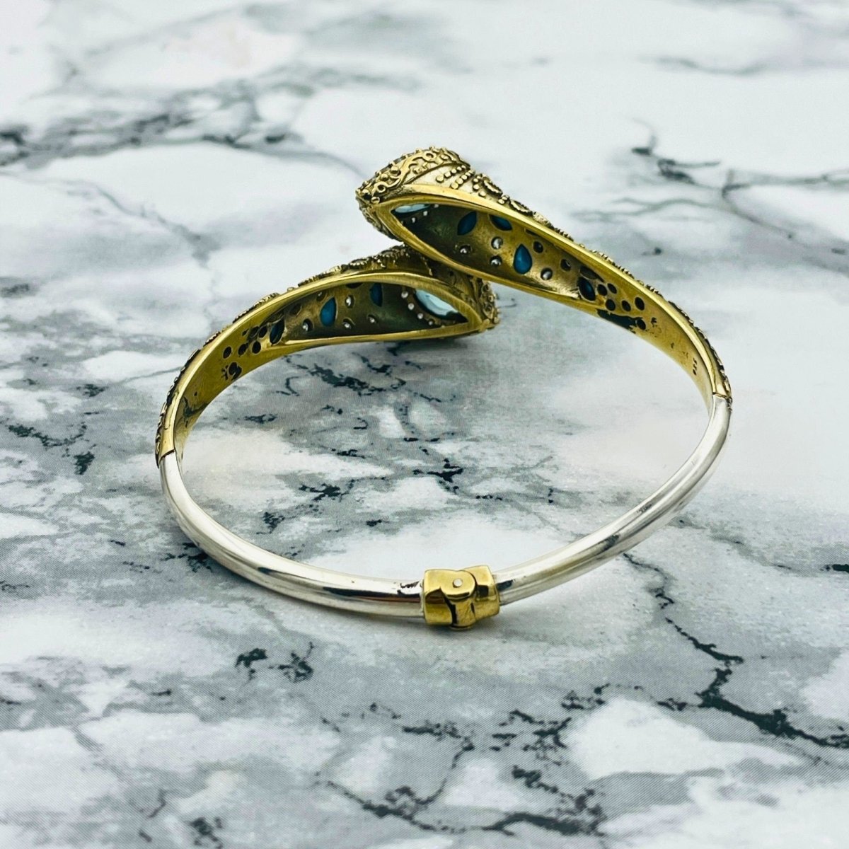 Que vous vous habilliez pour un événement spécial ou que vous ajoutiez une touche d'élégance à votre look quotidien, ce bracelet est conçu pour faire une déclaration. Adoptez la tradition et le style en commandant notre bracelet en pierre d'aquamarine ottomane fait main aujourd'hui. 🚫