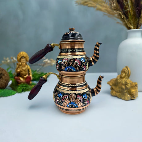 Lavina | Théière turque double en cuivre avec design d'Erzincan