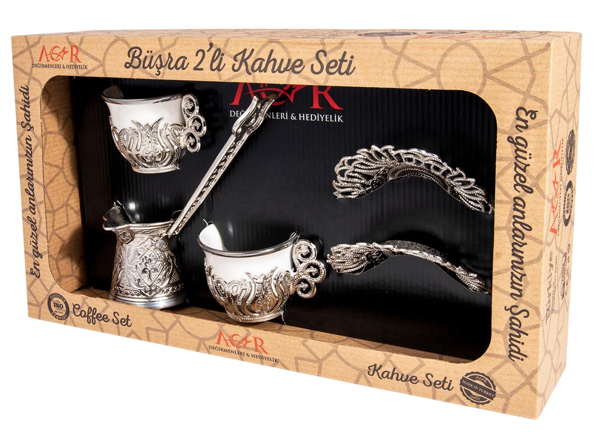 Ensemble de café turc de deux + cafetière - Doré - Blanc