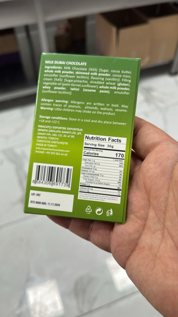 - Ingrédients Premium : Conçue sous la devise « Croquants & L'Ambiance Dubaï », cette barre utilise des ingrédients de qualité pour offrir un produit premium et gourmand qui se démarque.