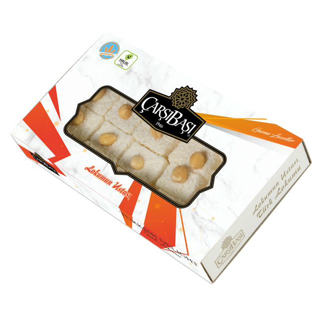 C'est un véritable délice "Sultan" du "Lokumun Ustasý" (Maître du Lokum). Il présente une base de lokum douce et lactée généreusement garnie d'une noisette turque entière et premium. Chaque pièce offre l'équilibre parfait entre une mastication douce et sucrée et un croquant riche, noisetté et satisfaisant.