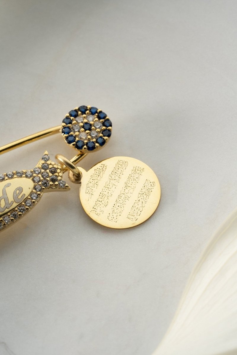 Épingle pour bébé motivée islamique Ayatal Kursi avec nom en pieds roses personnalisés