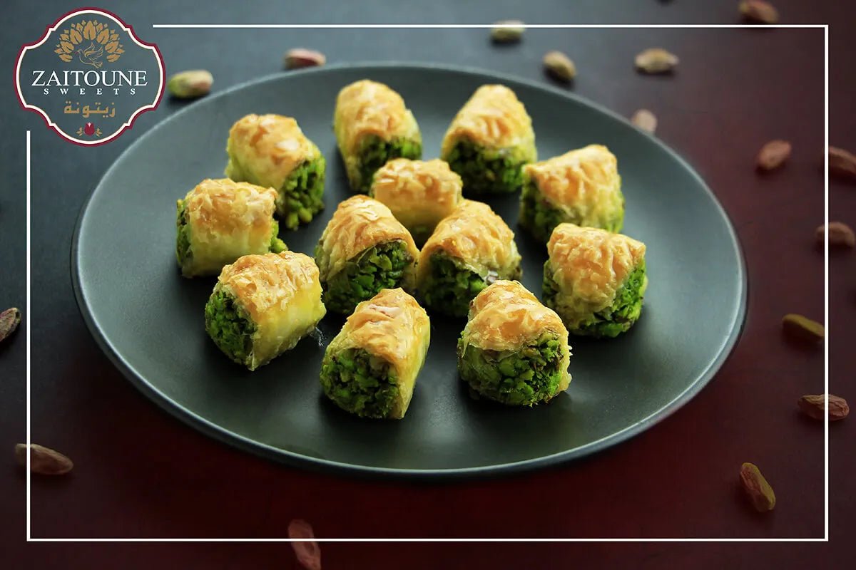 Kol & Shkor avec du miel par Zaitoune est rempli de desserts turcs, contenant des pâtisseries sucrées faites de fines couches de pâte, farcies de pistaches et sucrées avec du miel. Emballé avec un couvercle en métal soutenu par un couvercle en nylon, pour garantir la protection du produit contre les facteurs externes tels que l'humidité et préserver sa qualité et son goût.
